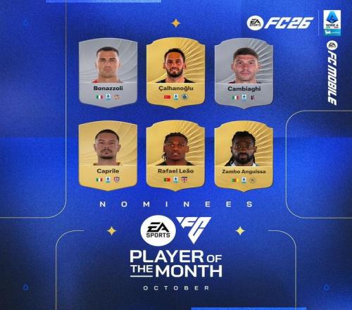 北京时间10月31日,意甲官方公布了联赛10月最佳球员的6位候选者,恰尔汗奥卢、莱奥以及安古伊萨在列。